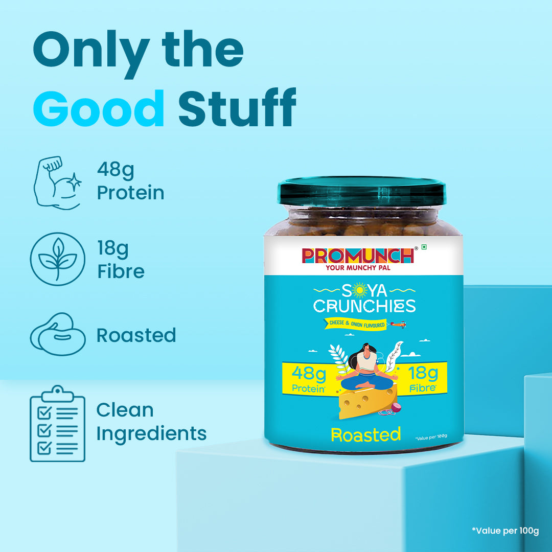 - NO ARTIFICIAL FLAVORS OR PRESERVATIVES: PROMUNCH's Soya Crunchies made with natural ingredients, free from artificial flavors or preservatives.