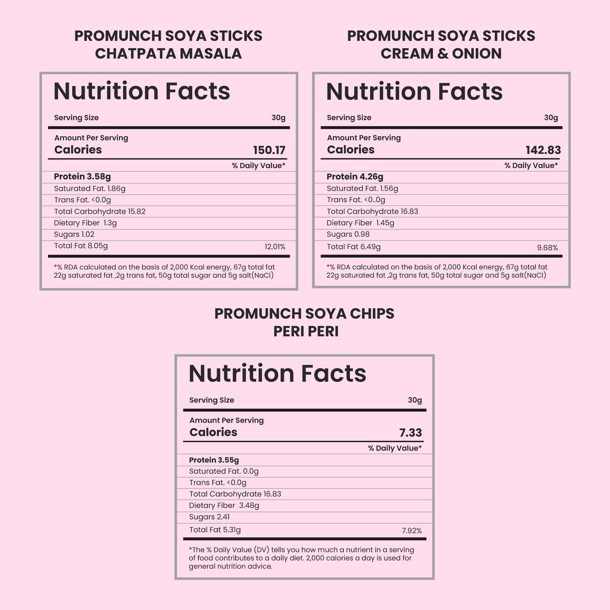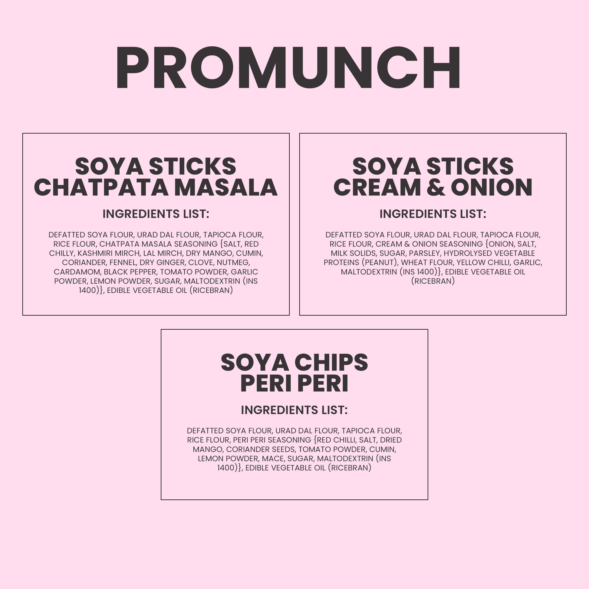 PROMUNCH Combo Pack - Soya Sticks (Chatpata Masala , Cream Onion) + Soya Chips (Peri Peri) - 100gm x 3