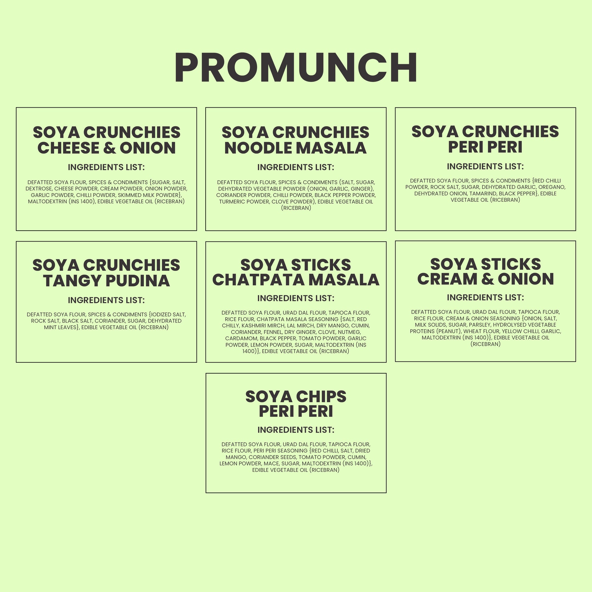Satisfy your cravings with the PROMUNCH Combo Pack – a perfect mix of delicious flavors and healthy snacking! This combo includes: